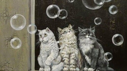 Рубрика: "Кошки в искусстве" Мы с вами, дорогие читатели, уже знакомились с картинами Киры Паниной. Это были милые и забавные зимние коты со своим добрым кошачьим миром. 9 июня в мире празднуется один необычных и забавных праздников - День пускания мыльных пузырей. И если даже у людей мыльные пузыри вызывают интерес, то что же говорить про кошек? Для них мыльные пузыри - загадочные и невероятно притягательные существа. Их хочется немедленно поймать, понюхать, попробовать на зуб. Но эти радужные создания ускользают, исчезают, растворяются, чем ещё сильнее подогревают интерес кошек...