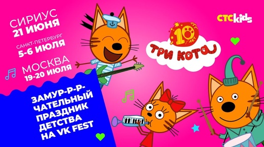 🎆 СТС Kids приглашает отметить десятилетие мультсериала «Три кота» на VK Fest