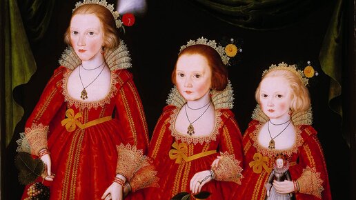 В продолжение истории об одном интереснейшем портрете с двумя сёстрами, хочу показать вам ещё одну картину. Три девочки-сестрички, ещё маленькие, но одеты, как и положено в те времена, в наряды, во всём подобные нарядам взрослых дам. И какие!.. Однако прежде, чем мы поговорим о нарядах, хочу обратить ваше внимание на их волосы. О, золотистый цвет был самым желанным тогда! И тем, кому природа при рождении не подарила светлые волосы, приходилось немало повозиться и помучиться, чтобы добиться их самостоятельно...