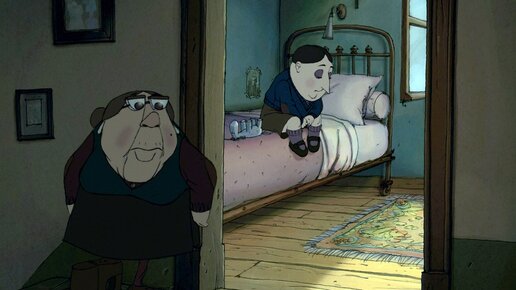 Чем же этот мульт привлекает? Стиль рисовки этого мульта как раз и привлекает к себе внимание. Все люди максимально гиперболизированы и не пропорциональны. Если человек худой, то он как спичка, а если толстый то как автобус. Ну и про цвета не стоит забывать. Здесь они максимально однотонные, тусклые и не яркие. Действия здесь все максимально плавные и спокойные, и даже когда идёт эшен. Всё это суммируется и заранее уже задаёт такое тоскливое настроение. Хотя цель мульта далеко не заставить зрителей грустить...