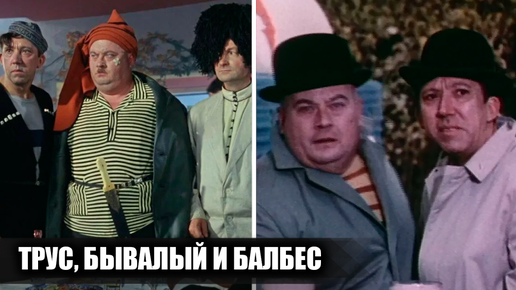 При упоминании Евгения Моргунова, Георгия Вицина и Юрия Никулина мы тут же вспоминаем Бывалого, Труса и Балбеса. Изначально эта легендарная троица появлялась лишь в фильмах Леонида Гайдая, но затем Моргунов, Вицин и Никулин стали появляться и в других известных проектах, причем не только в кино. И сегодня я хотел бы вспомнить фильмы, мультфильмы и даже игры, где появлялись вместе Евгений Моргунов, Георгий Вицин и Юрий Никулин в роли Бывалого, Труса и Балбес, и не только. Для начала я хотел бы вспомнить...