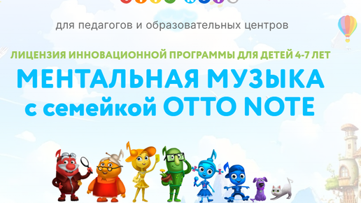 Метод OTTO NOTE - для тех педагогов и руководителей, кто готов внедрять инновации и хотят больше зарабатывать на любимом деле! У нас есть несколько программ для педагогов: Главная, фундаментальная программа по развитию при помощи музыки интеллекта детей 4-7 лет. Это мощная, проверенная система обучения детей музыке по-новому, с поминутными планами уроков, готовыми интерактивными материалами "под ключ" и серьезным обучением преподавателей в течение 6-10 месяцев. По этой программе преподают сертифицированные педагоги в 25 городах России...