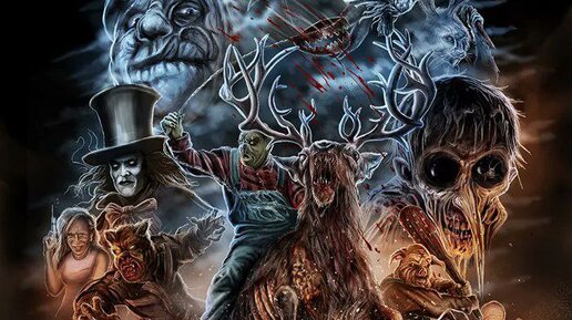 На постере можно увидеть целую кучу разных жутких персонажей...