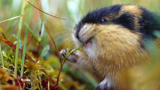 Мало кто знает, что миленькие лемминги принадлежат к семейству Muridae отряда Rodentia, в которое входят крысы, мыши и полевки. В «урожайные» годы эти не в меру расплодившиеся грызуны совершают, на первый взгляд, необъяснимые массовые самоубийства. Природа наделила этих кругленьких, как колобок, грызунов нарядной шубкой, желтовато-бурой на спинке с пестрой мозаикой черных полосок и пятен, у каждого выложенной по-своему. На грудке и животе мех окрашен светлее. При виде опасности лемминг, раздувшись, замирает на месте и храбро задирает голову, демонстрируя врагу свою светлую манишку...