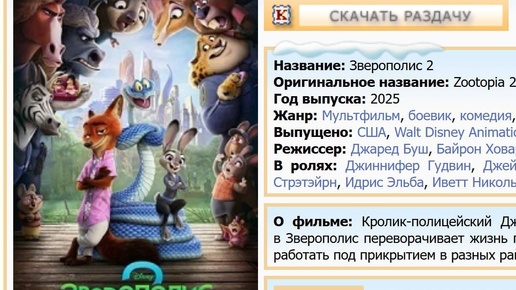 «Зверополис 2» слили в сеть мультфильм уже можно посмотреть в русском дубляже и хорошем качестве