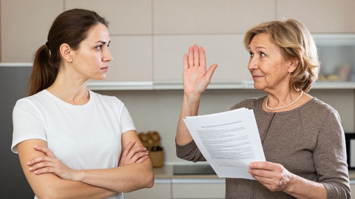 — Половина квартиры теперь моя, невестка. Хочешь — живи с нами, не хочешь — дверь там, — заявила свекровь, показывая дарственную от сына