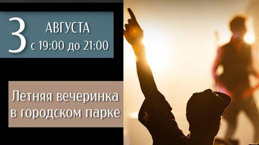 🎉 Летняя вечеринка в городском парке! Не пропусти жаркий вечер живой музыки под открытым небом! 📅 3 августа 🕖 с 19:00 до 21:00 📍 Площадка около Тира На импровизированной сцене — кавер-группа “Перекрёсток”...