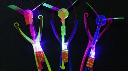 Дешевая игрушка для детей. Светящийся вертолетик с рогаткой.