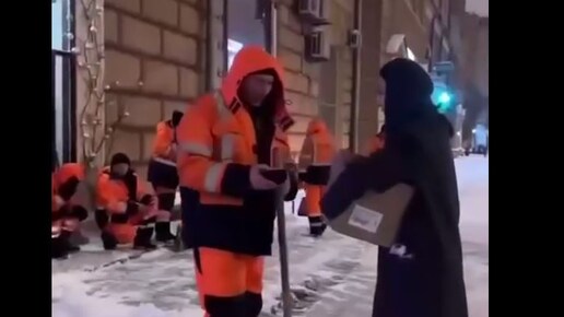 Про мигрантов и наших. Москвичка вышла покормить уборщиков улиц бутербродами и сняла это на видео