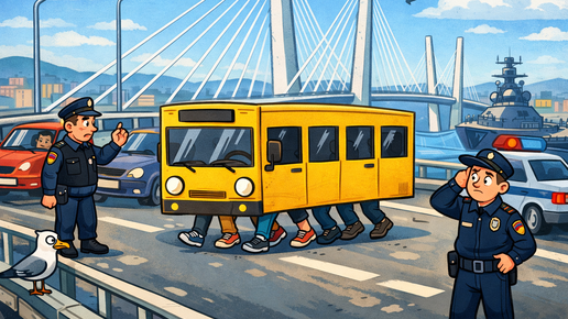 Во Владивостоке четверо мужчин переоделись в автобус, чтобы перейти мост — видео стало вирусным