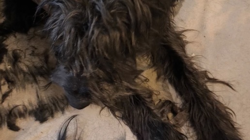 В этот раз всего 3 часа, под машинку быстро, но я хотела сохранить часть бороды и лапы, поэтому пришлось колтуны на бороде аккуратно выстригать ножницами...