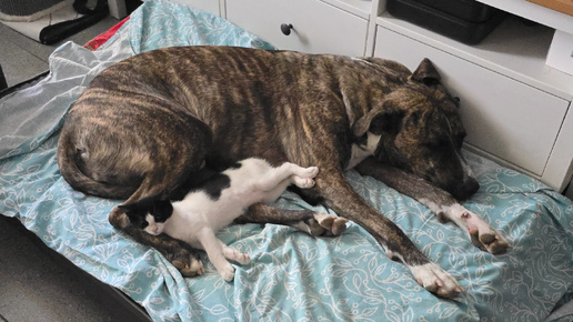 Когда мы брали Панча перед усыплением, он весил 36 килограммов и был очень худой. Голова большая, а тело тонкое, лапы узкие — весь какой-то двухмерный. Потом мы его откормили до 40 килограммов, и это был идеальный вес. Он был подвижный, сильный, носился как ветер. Со временем он подрос, и теперь в холке не 66, а 68 сантиметров. Для его комплекции хороший вес — 42 килограмма. Но как-то так вышло, что там угостили, тут угостили, и незаметно прибавились ещё два килограмма. Теперь он весит 44. Наш ветеринар сразу сказал, что для такой собаки лишний вес опасен — страдают суставы...