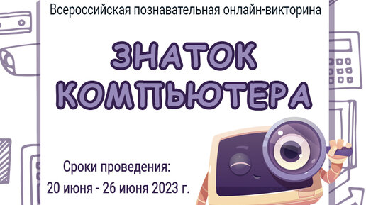 Приглашаем принять участие во Всероссийской познавательной онлайн-викторине для дошкольников «Знаток компьютера»