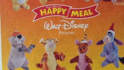 После выхода в свет полнометражного диснеевского мультфильма Винни Пух в 2000 году в McDonald's тут же появляется серия игрушек с полюбившимися всеми героями. Самой желанной игрушкой из этой серии конечно же становится главный герой Тигруля, бешеная энергия полосатого холерика не дает ни ногам, ни его друзьям покоя). Мультфильм Винни Пух 2000 выполнен в лучших диснеевских традициях, рекомендую к просмотру! В Хеппи Миле из данной серии представлено 8 плюшевых героев: 1...