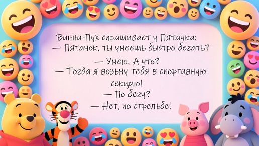 Моя подборка анекдотов из серии Винни-Пух и все-все-все. 🔥Рубрика 👩 ALISA PRO ЮМОР ⚡заставит вас улыбаться 😄 и смеяться 🤣 ✨ ✨ ✨ — Превед, Пятачок! А я тут новые национальные проекты разработал. — Превед, Винни! И что это за проекты? — «Шнурок от звонка», «Лопнувший резиновый шарик», «Горшочек из-под мёда» и, самое главное, — проект «Доступная нора»! — Но, Винни, это какие-то неправильные проекты! — Ничего, Пятачок, для ишаков сойдет. ✨ ✨ ✨ Приходит Пятачок в офис к Винни-Пуху...