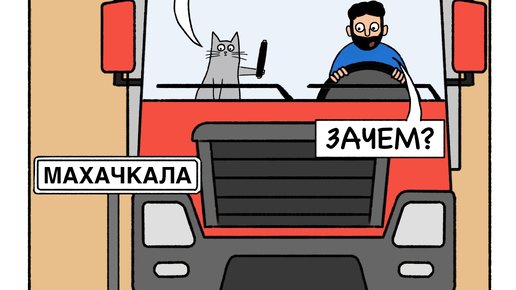 Кот Вулкан и дальнобой каждый день проезжают разные города! И в каждом городе с ними случаются маленькие приключения. Вот например в Воронеже они успели даже сфотографироваться с памятником: А вы смотрели такой мультфильм? В Махачкале кот Вулкан решил сделать так, чтобы не выделяться среди местных жителей: А вы тоже покупаете сувениры, находясь в другом городе? Герои нашего комикса, обязательно следуют этому правилу: А как думаете,...