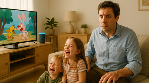 Утро в семье всегда начинается одинаково: родители включают новости, чтобы узнать, что происходит в мире, а дети готовятся к школе. Всё идёт по расписанию, пока в процесс не вмешивается техника. Однажды умная колонка решила, что слушать надо не папу с его «Включи новости», а детей, которые хитро смотрели на экран. Итог: вместо утренних сводок на телевизоре заиграли мультики. Смешно для детей, раздражающе для родителей, и по-своему поучительно для всех. Папа подошёл к колонке и чётко произнёс: