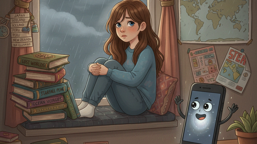 1. У вас бывало такое настроение, когда ничего не хочется? В игрушки играть не интересно, мультики смотреть надоело, даже компьютер и тот не вдохновляет. Именно такое настроение было у Кати Фантазеровой. Сидела она возле окна, смотрела на серую тучу, которая превратила день в вечер и грустила: «Вот Иванов Боря в Египте был. Он там с маской плавал, на кораллы смотрел, рыбок разных видел. А Оля Галкина из Италии вернулась. Говорит, пицца там вкусная! А макароны - спагетти называются». Катя уже прочитала все книги Жуль Верна и решила, что когда вырастит, обязательно станет путешественником...