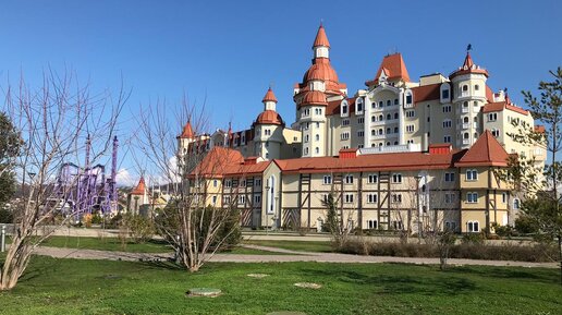 Все мы смотрели мультфильмы «Дисней», где перед началом показа высвечивалась заставка в виде сказочного замка с башенками🏰. Приехав в Сочи уже вечером и впервые выйдя на балкон отеля Сочи Парк, перед глазами появилось великолепное здание, сияющее различными цветами иллюминации- это отель «Богатырь». 🏰Отель «Богатырь»: Категория: 4 звезды Количество номеров:293 номера Дата открытия: лето 2014 года Отель «Богатырь»- построен в виде сказочного рыцарского замка, и не только внешне, но и внутренняя отделка замка выполнена в таком же стиле...