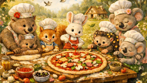В Вомбат-граде наступило утро, пахнущее базиликом. Нет, базилик ещё никто не сорвал. Просто в воздухе висело предвкушение. А предвкушение, как известно, пахнет именно тем, чего ждёшь сильнее всего. Сегодня ждали пиццу. — Бабушка Нора доживет до ста тридцати двух лет, если съест хотя бы кусочек той самой пиццы! — объявил папа Торр, завязывая фартук на животе так туго, что фартук пискнул. — А если не съест? — спросил Винсент, выглядывая из-за стола. — Тогда, — Торр понизил голос до шепота, — она, возможно, проживет всего сто тридцать один год и одиннадцать месяцев...
