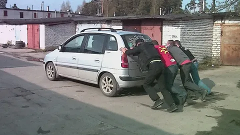 Как завести тачку с толкача, если аккумулятор сел. Если у тебя старенький аккум, и ты оставил фары включенными, а потом вернулся машина не заведется. Аккумулятору не хватает силы, чтобы стартер крутанул. И вот ты стоишь, вокруг ни одной тачки, чтобы «прикурить», да и проводов нет. Что делать? Можно попробовать завести с толкача. Главное, чтобы пара человек согласилась помочь. Если у тебя автомат, забудь про это так не заведется никак. Только «прикурить» или новый аккумулятор ставить. С толкача можно завести только механику...