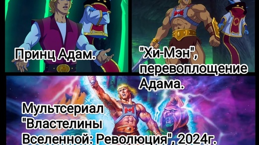 В центре мироздания находится планета "Этерния". Населенная людьми и чудовищами, волшебниками с их колдовством и учёными с их технологиями. Злодей "Скелетор" и его войска пытаются завоевать Замок "Грейскалл". Поскольку, владеющий замком обладает доступом к древним магическим секретам, дающим силу завоевать вселенную и получить бессмертие. Ему противостоит принц Адам (при перевоплощении он "Хи-Мэн") и другие защитники планеты. На фото ниже можно увидеть принца Адама, его перевоплощение в "Хи-Мэна", других защитников Этернии и "Скелетора" с его приспешниками...