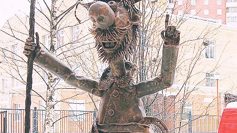 1. Дворник из мультфильма во дворе Санкт-Петербурга В Петербурге стало одним сказочным героем больше. Всклокоченный старичок стоит на камне в одном из дворов и пытается что-то рассказать нам. В руке его веник, к которому вместо прутьев привязан букет роз. Большинство людей узнают в нём дворника из мультфильма «Падал прошлогодний снег». Это новая работа известного питерского кузнеца Сергея Мельникова, установленная здесь на радость детей и взрослых. Выполнена композиция методом ковки.