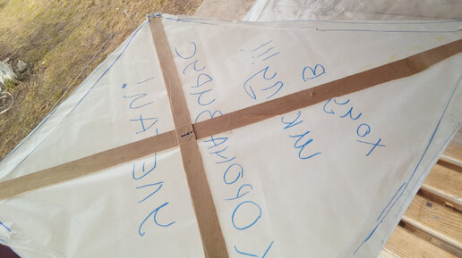 На трудах сказано дистанционно на удалёнке сделать змея воздушного. Делать как сделали все – бумажный, как самолётик и выслать фото училке. Ну обман просто. Решили сделать из того что есть в хозяйстве. Попроще и быстрей. Но по настоящему. Делаем. Был на чердаке шпон. Можно тоненькие рейки, но шпон вообще легкий. Отрезали его. Схемку накидали. Крест соединили, клей и степлер...