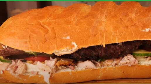 Приветствую всех, в этой статье я вам расскажу как можно приготовить тот самый Джейков наивкуснейший бутерброд из мультфильма "Время приключений". В мультике Джейк использовал в качестве начинки птицу, которую он выловил из окна, мы же можем купить в магазине допустим курицу или индейку. В моем случае использовался цыпленок, его необходимо посолить и поперчить по вкусу, после чего обжарить и довести до готовности в духовке, после чего снять с него мясо вилками, если же использовать филе, то все становится гораздо проще, ведь в таком случае можно сразу его нарезать...