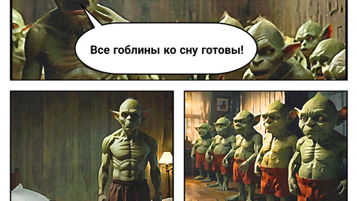 Вечереет... ... У гоблинов был тяжёлый день, и уже совсем скоро им нужно будет ложиться спать... ... все задачи выполнены, пора бы уже прилечь на боковую, что бы завтра со свежими силами приступить к новым свершениям или злодеяниям... ... как говорят сами гоблины: ... - очередной день прошёл, ну и к дракону под хвост он пошёл... Прежде всего, подготовка ко сну начинается с общей переклички, на которой каждый гоблин кричит, что он на месте, что он никуда не сбежал и вообще он доволен тем, что...