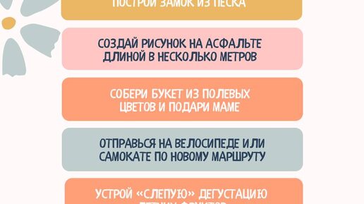 Лето — время приключений! Предлагаем 9 веселых челленджей, которые сделают каждый день незабываемым. Выбирайте задание наугад или выполняйте по порядку — и пусть с их помощью с вами случится много ярких событий и радостных моментов...