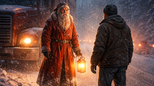 Мне эту историю рассказал дальнобойщик Сашка. Не сразу — такие вещи обычно рассказывают под конец разговора, когда дорога длинная, а ночь плотная. Рейс у него был под самый Новый год. Из Тюмени на север, гружёный, по зимнику. Дорога тяжёлая: метёт, фуры редкие, связь местами пропадает. Из тех дорог, где понимаешь — надеяться можно только на себя. В кабине тепло, печка гудит, двигатель тянет ровно. На панели — мандарины и термос. По радио ловится одна-единственная волна, и та с помехами. До полуночи оставалось часа два...