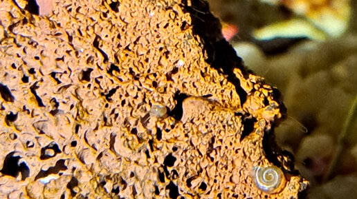 С покупкой растений для парков Аквариумбурга в городе появились пришельцы или неопознанные улитки. Самая первая с конусообразным панцирем была замечена через неделю на роголистнике и тут же выслана из города. Даже рассмотреть как следует не успели от страха! Позже мы заметили небольшую на Лавовой горе. Выловили самозванца. Затем еще одна также была поймана и удалена. Через некоторое время заметили третюю, ей удалось скрыться и довольно долго скрываться...