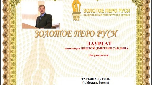 Не успела я в предыдущей публикации похвастаться, что книжка моя, самостоятельная и решительная девица, стала лауреатом конкурса "Золотое перо Руси", скромненько затесавшись единственной девочкой в десятку других лауреатов и дипломантов - сплошь военных журналистов и редакторов со всей России, как подоспело и подтверждение сего факта. Сопровожденное письмом с такими словами, каких мне отродясь не говорили... "Уважаемая Татьяна!!! Поздравляю Вас с получением Звания Лауреата Золотого пера 2025! К письму прилагаю Ваш Диплом...
