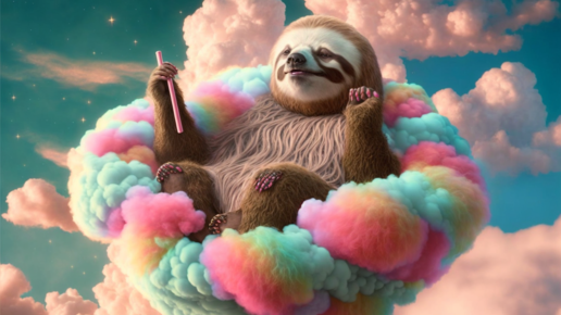 Ну что я могу сказать, сегодня в канале ежедневного челенджа вообще никакого разнообразия. Точнее разнообразие вроде как есть, и можно залипнуть на пару часов. Столько разных ленивцев я в жизни не видела. И так, давайте посмотрим, какие арты и фото с ленивцем рисует нейросеть Midjourney. Я выбрала самые оригинальные и красивые картинки. В некоторых темах было сразу несколько удачных генераций, поэтому листайте галереи. Ленивец, парящий на облаках из сахарной ваты. Диско 1970-х, танцующий ленивец...
