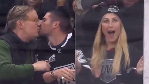 На хоккейном матче «Лос-Анджелес Кингз» случился забавный момент, который быстро разлетелся по соцсетям. Комик Энди Рихтер и профессиональный танцор из шоу «Танцы со звёздами» Алан Берстен попали в объектив знаменитой «камеры поцелуев» — и не растерялись. Для тех, кто не в курсе: kiss cam — это такая американская традиция на спортивных матчах. Камера выхватывает из толпы пару, показывает их на большом экране, и они должны поцеловаться. Обычно это влюблённые или супруги, но иногда получаются неожиданные комбинации...