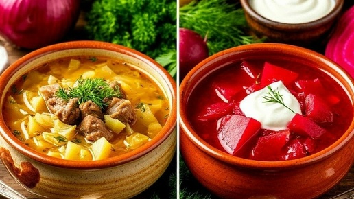 Щи и борщ не только вкусны, но и полезны: Идеальный баланс БЖУ, витамины группы В, витамин С, К, органические кислоты, фолиевая и пантотеновая кислоты, аминокислоты, каротиноиды, минеральные соли. Активизируют пищеварение и контролируют вязкость крови, разжижая её (что важно для сосудов и сердца). Мясные версии этих блюд содержат белки. Это сильнейший энергетик, который обеспечит высокую работоспособность и надолго избавит от чувства голода...
