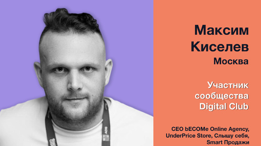 Digital Caramel и Digital Club запустили совместную Дзен-колонку 🧘♂️. Здесь мы берем интервью у ярких личностей из мира Digital. Гости рассказывают нам о своем видении сферы, ее перспективах, проблемах и путях их решения, делятся необычными историями, связанными с нишей, лайфхаками и рекомендациями для саморазвития. Мнения приглашенных героев субъективны, и тем интереснее их разнообразие. Сегодня наш гость – Максим Киселев. Максим – участник сообщества Digital Club и CEO bECOMe Online Agency, UnderPrice Store, Слышу себя, Smart Продажи...