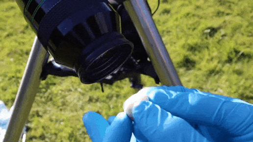 Астроном Марк Томпсон установил 80мм телескоп с увеличением 50х, направив его на Солнце, и посмотрел в телескоп. Собственные глаза он не стал подвергать опасности — вместо него Солнцем «любовался» глаз свиньи Строение глаза свиньи похоже на строение глаза человека...