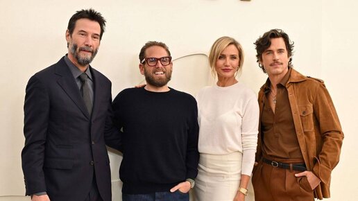 📸Кэмерон Диас, Киану Ривз, Джона Хилл и Мэтт Бомер на пресс-конференции Apple TV