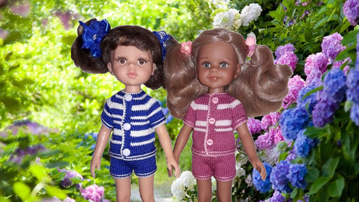 Летний костюмчик спицами для куклы Паола Рейна 32см.