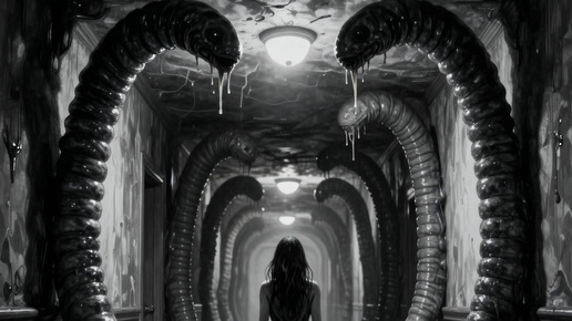 История двенадцатая: черви Валентина вошла в тёмный коридор и замерла от неожиданности. Со стен и потолка, копошась и закручиваясь в тугие узлы, свисали огромные длинные черви. Их жирные тела лоснились и блестели от солнца, игриво заглядывающего в большое окно. Девушка сделала один шаг и снова остановилась. Скользкие твари, будто учуяв запах жертвы, начали ползти и тянуться ей навстречу. Из щелей старого скрипучего пола стали появляться другие черви, активно извиваясь и норовя ухватить Валентину за ногу...
