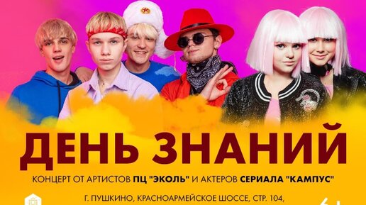 1 сентября в 16:00 на парковке ТРЦ «Пушкино Парк» в Москве пройдёт концерт «День знаний». Выступят участники популярного YouTube-канала KiKiDo, артисты продюсерского центра «Эколь», актёры сериала «Кампус» и участники телепроекта «Голос...