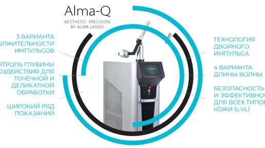 Alma-Q - самая мощная Nd:YAG лазерная система, сочетающая в одной платформе Q-switch Nd:YAG, короткоимпульсный Nd:YAG и длинноимпульсный Nd:YAG. Это стало возможным благодаря применению системы квази-длинноимпульсного режима подачи энергии...