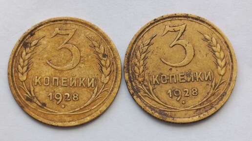- А почему бы не почистить парочку советских монеток? - подумал я. Изъял из баночки две монеты по 3 копейки 1928 года. Вот такие: Если окинуть взглядом эти монеты, то видно, что на их поверхности имеются небольшие "очаги" зелени. Скорее всего, эти очаги так и останутся. Буду чистить своим простым традиционным способом, про который несколько раз рассказывал на страницах канала. В итоге через несколько часов я имел вот такой результат: Год 1928 для советских трехкопеечников является массовым. В среднем при наличии хорошей сохранности монетки оцениваются в 200 рублей...