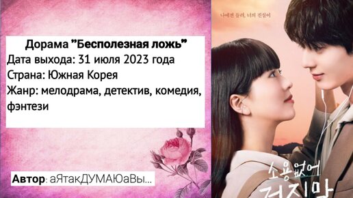 Всем привет! Сегодня мы поговорим об одной из лучших дорам 2023 года "Бесполезная ложь" (другое название "Мой милый лжец"). Романтика и детектив, что может быть лучше? Сюжет Сюжет разворачивается вокруг необыкновенной девушки - Мок Соль Хи, у которой есть дар - распознавать ложь. Этот дар у нее с детства. Мать Соль Хи молилась, чтобы у ее дочери был талант, с помощью которого она смогла бы зарабатывать. Повзрослев, главная героиня создала свое агентство. Соль Хи помогала раскрывать лжецов. Ее соседом становится Ким Доха - популярный композитор, хранящий тайну своего прошлого...