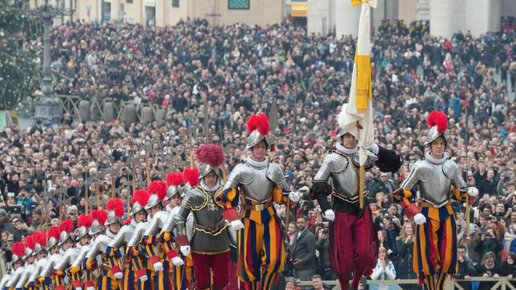 Вы знали, что у понтификов в Ватикане самая старая армия, существующая сейчас в мире? Швейцарская гвардия Ватикана Была создана по распоряжению папы римского Юлия II, который вел беспрерывные войны. Сейчас швейцарцы: Считается, что красивую одежду гвардейцев нарисовал Микеланджело Буонаротти, но письменных подтверждений этому нет. Форма имеет цвета рода Медичи, покровителей художника и скульптора. В форму входят полосатые красно-сине-жёлтые камзолы и подхваченные под коленями брюки, берет или морион с красным плюмажем в торжественных случаях, кираса, алебарда и шпага...