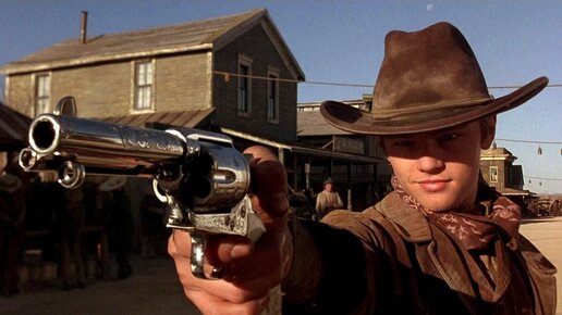 Рассел Кроу, Леонардо ДиКаприо и Шэрон Стоун меряются "пушками". (The Quick and the Dead, 1995, США) Любопытно, что когда культовый дядька Сэм Рэйми (трилогия "Зловещие мертвецы") вдруг снял в 2002-м "Человека-паука", это почти никого не удивило. Ведь доселе он уже баловался с "человеко"-комиксами и успешно - "Человек тьмы" (1990). А вот когда в 1995-м Рейми вдруг опаньки! - выдал на экраны "Быстрого и мёртвого", тут-то лица у его поклонников и повытягивались - "Шта-а?". - Не "шта", а вестерн! - ответил на это Сэм...