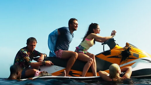 Но, на самом деле, это фильм Shark Bait (Jetski) от автора малобюджетного трехсортного ширпотреба - Джеймса Нанна. Он сообщил, что раньше такого никто не снимал, идея приснилась ему во сне и она гениальна. "Пятеро 30-летних школьников решают столкнуться друг с другом на двух гидроциклах в открытом море. Неизвестно кто из них это придумал, но главная героиня Наташа, с самого начала фильма подозревала, что что-то тут нечисто" Фильм пестрит колоритными персонажами - истеричный блондинистый мокрый топик,...