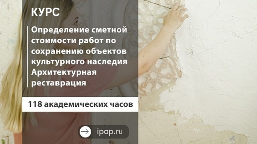 В нашем институте проводится специализированный курс повышения квалификации «Определение сметной стоимости работ по сохранению объектов культурного наследия. Архитектурная реставрация». ✅ Уникальность: Это единственная программа в РФ, которая комплексно подходит к вопросу ценообразования в реставрации. Объем — 118 часов. ✅ Практика: В программу включены лекции технологов-реставраторов и экскурсии в реставрационные мастерские. Вы увидите работы своими глазами. ✅ Авторский состав: Руководитель группы — Соболева Мария Владимировна...